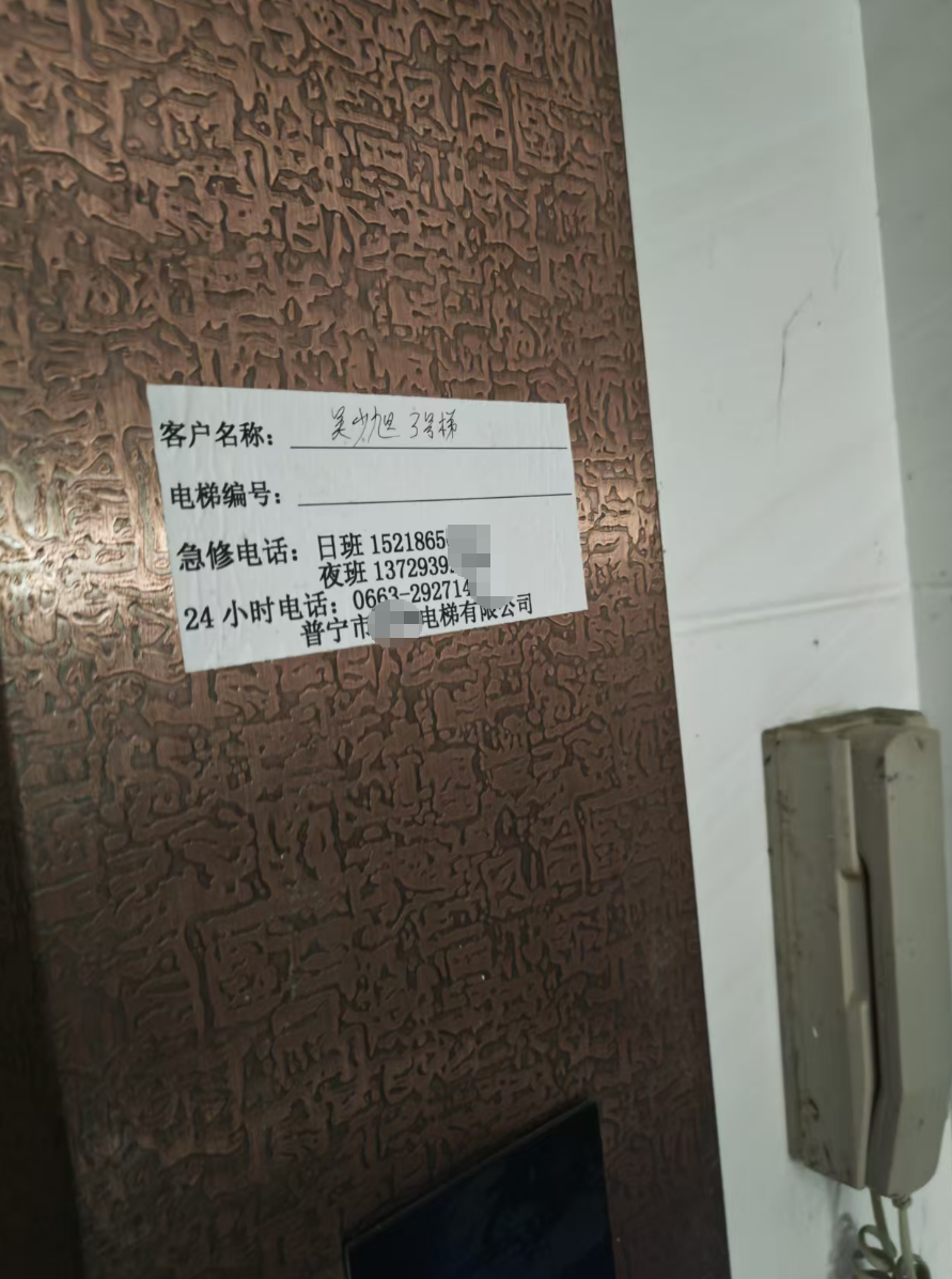 踏入大门,电梯处清晰显示着前门与后门的标识,后门大门还配备了高档指纹密码锁。整栋楼共有10层,在10楼的楼梯道处摆放着煤气罐,楼顶则安装了太阳能光伏板。走进室内,出租房的装饰看上去较为整齐。在电梯内,能看到电梯应急维修相关信息以及客户名称,客户名称一栏写着“吴少旭”。从这些细节不难看出,村民所举报的这处房屋建设的确归村干部吴少旭所有。